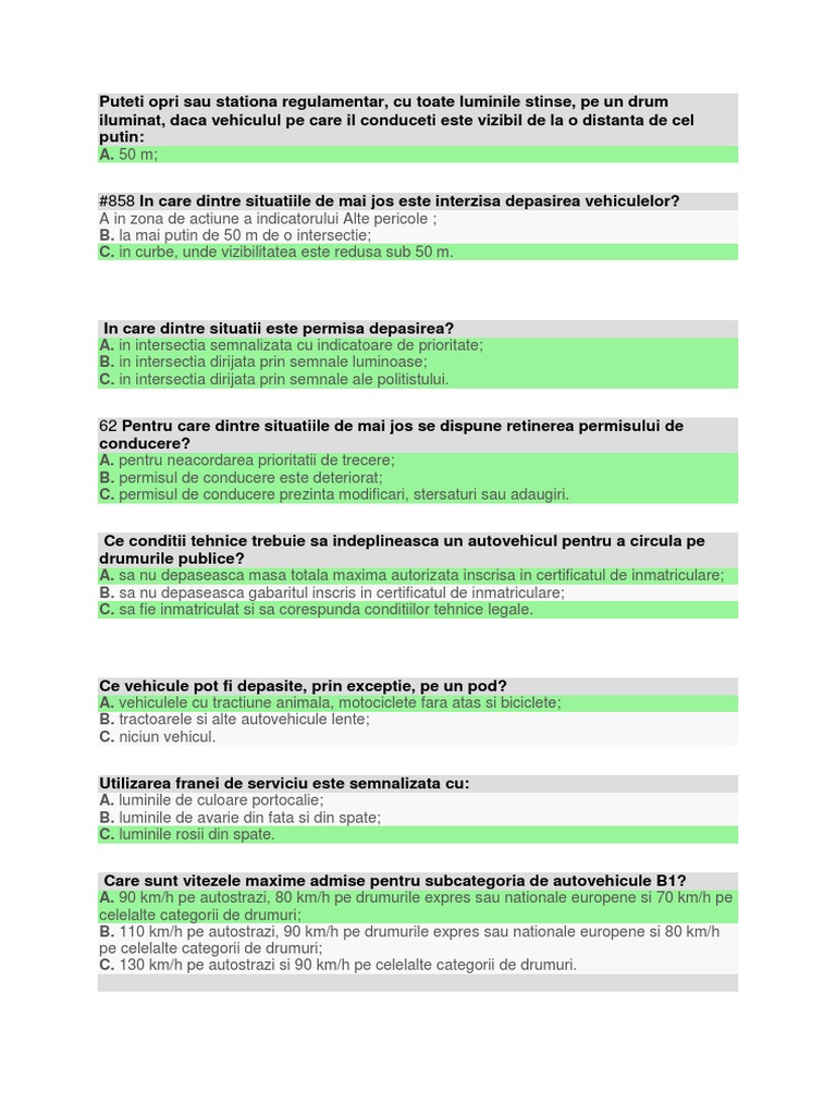Chestionare Auto Categoria B Chestionare Scoala De Soferi Docx Document