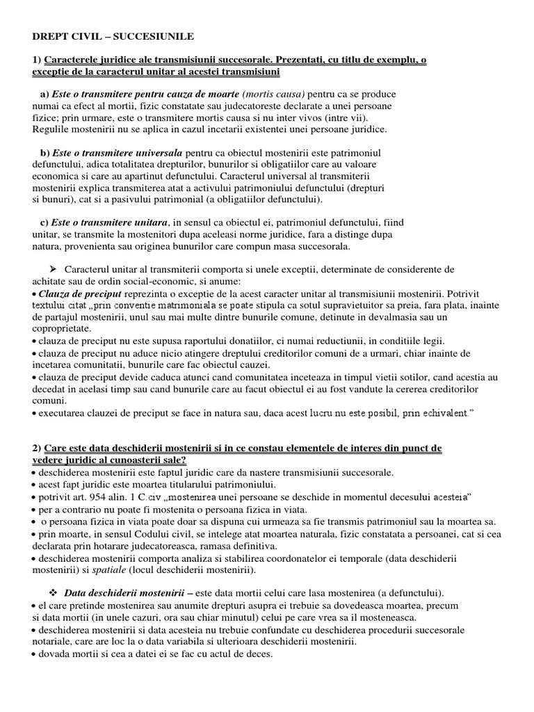 Subiecte Examen Dr Civil Succesiuni Sinteza