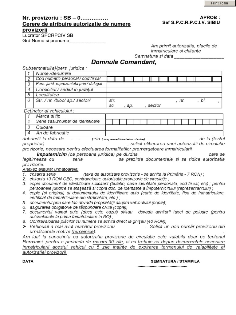 Cerere Numere Provizorii