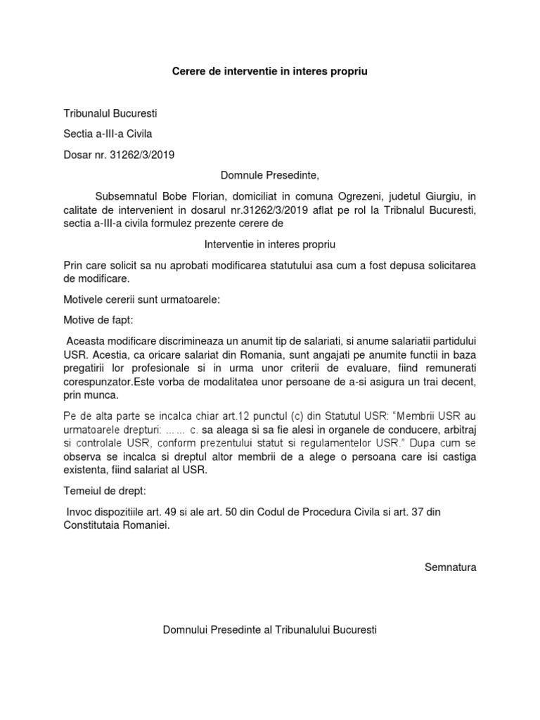 Cerere De Interventie In Interes Propriu Modificare Statut