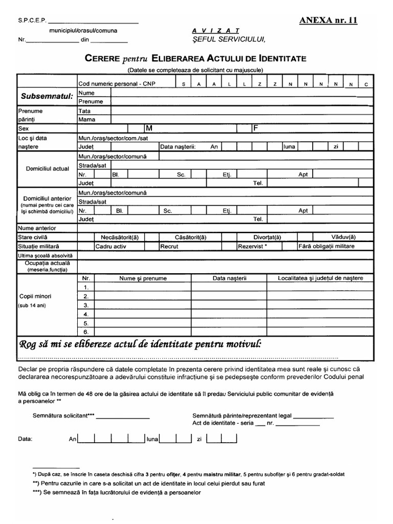 Cerere Pentru Eliberarea Actului De Identitate 14 Ani Model Completat