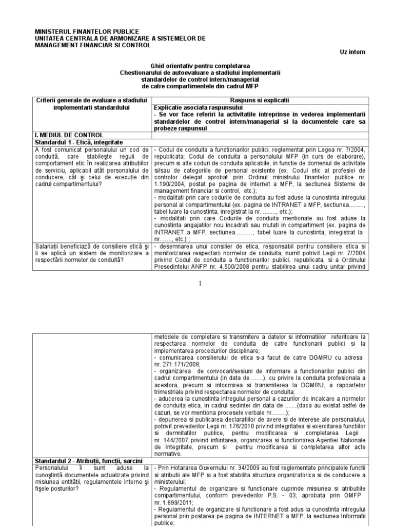 Raport 4 1 Chestionar Autoevaluare Management Cod 01 Pdf