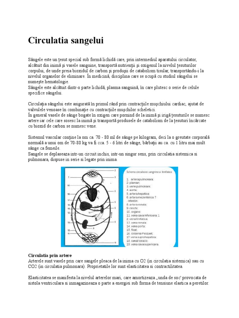 Circulaţia Sangelui Prin Vase Circulaţia Mare Circulaţia Mică Factorii Care Influenţează Circulaţia Sangelui