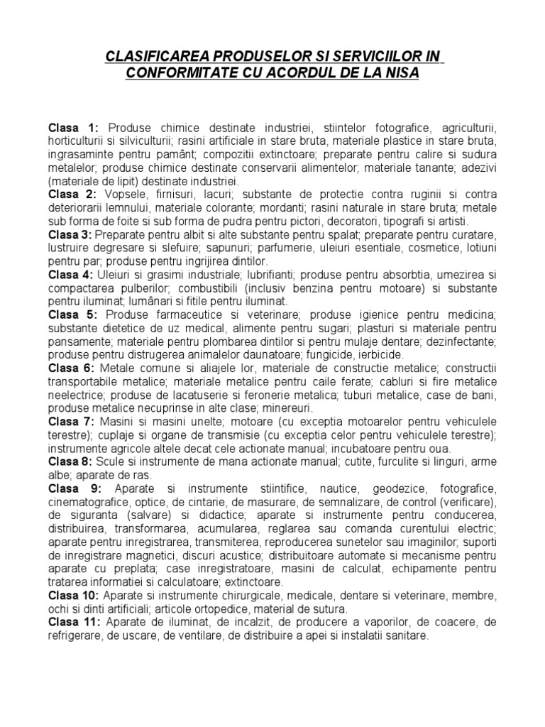 Clase Nisa Marci Clasificarea Internationala A Produselor Si Serviciilor