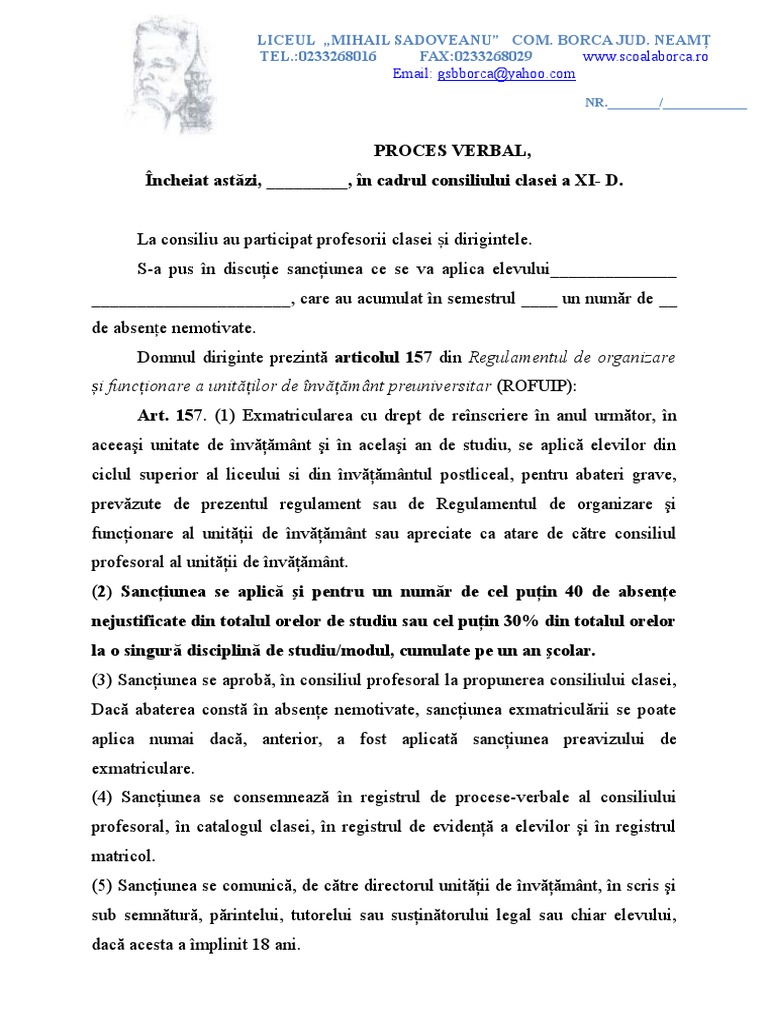 Pv Consiliul Clasei Cu Propuneri Scaderea Notei