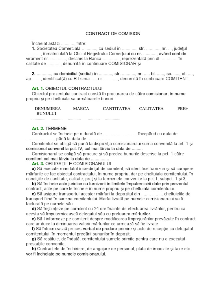 Model Contract De Comision