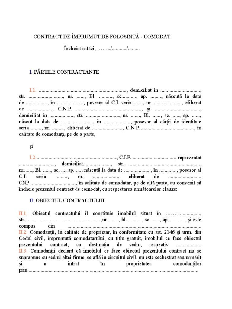 Contract De Comodat Model Acte Necesare Condiții Storia Ro