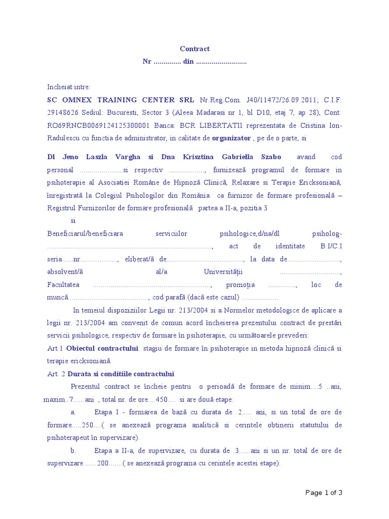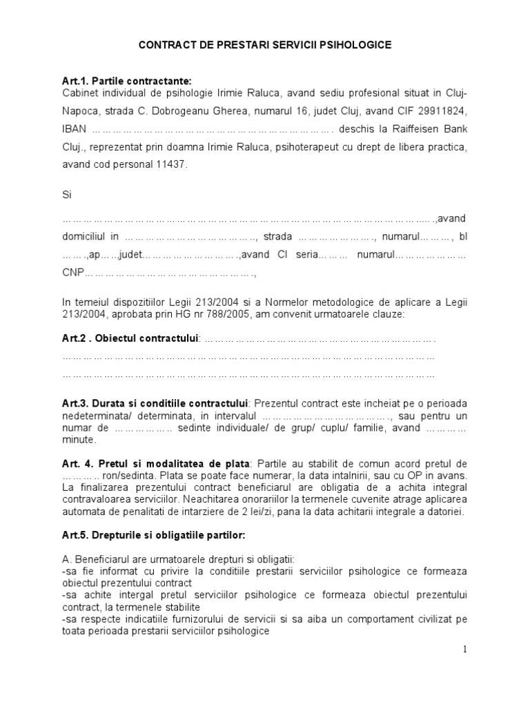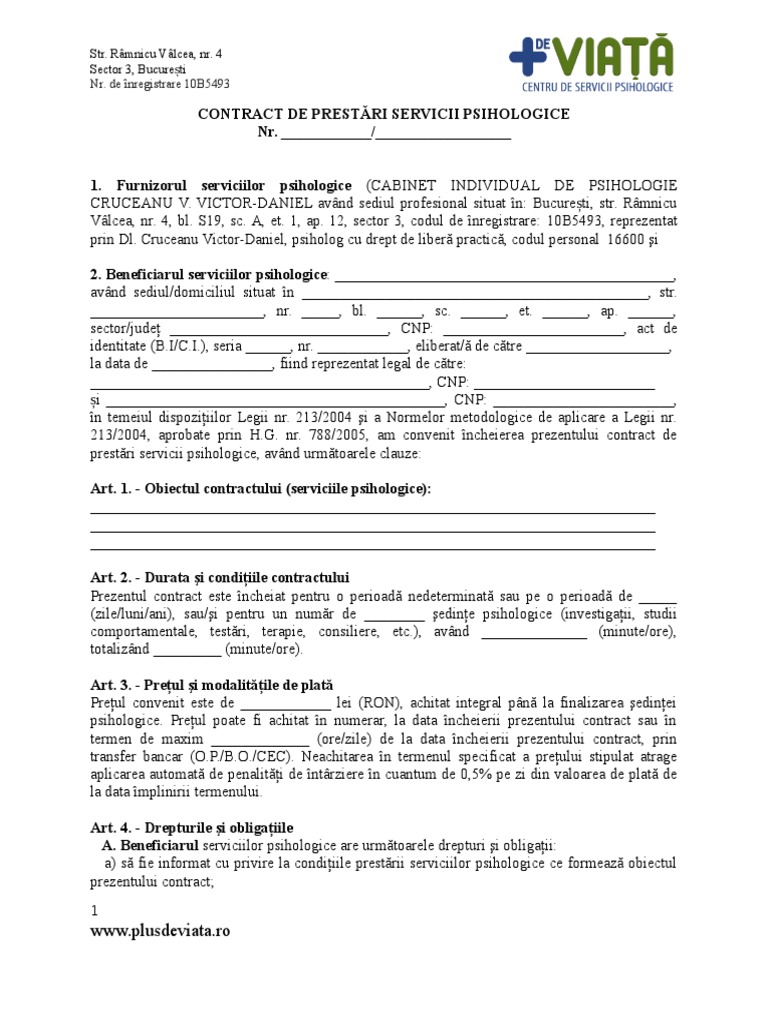 Contract De Prestari Servicii Psihologice Doc Document