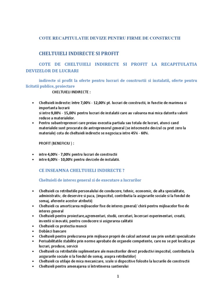 Recapitulatie Devize Analitice Cote Legale Pentru Firmele De Constructii Construct Nexus