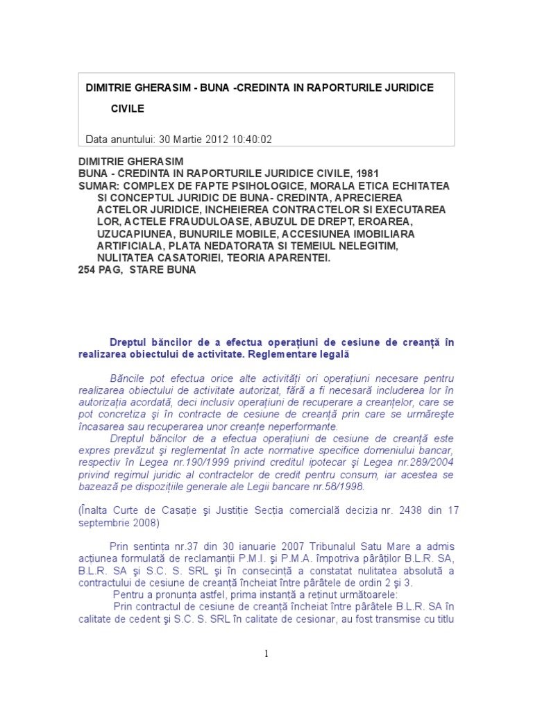 D Gherasim Buna Credinta In Raporturile Juridice Civile Okazii Ro