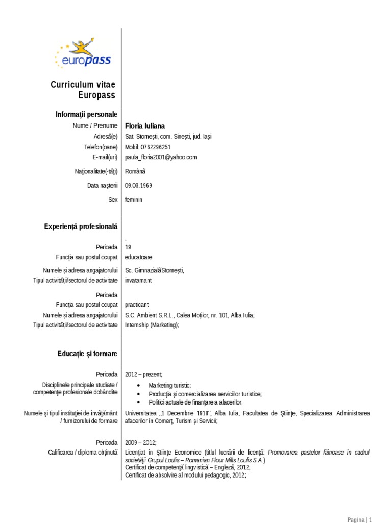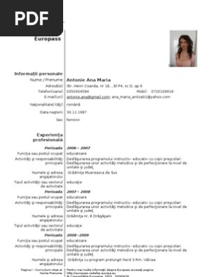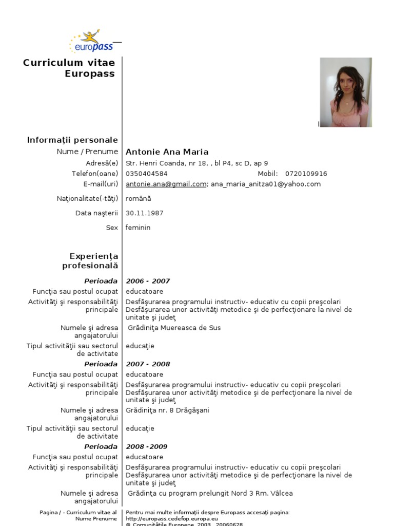 Curriculum Vitae European Completat Educatoare Stallone Pl