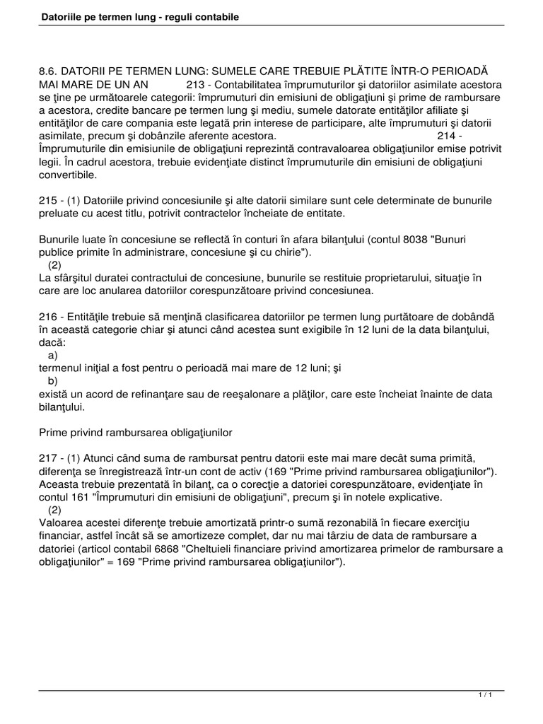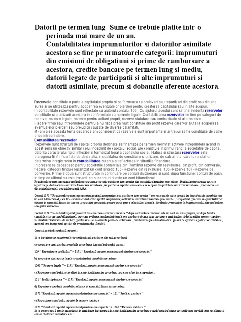Datoriile Pe Termen Lung Reguli Contabile