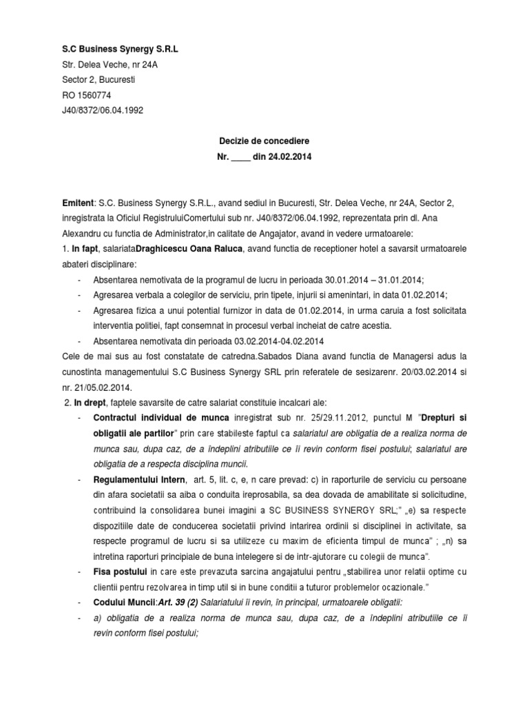 Decizie Concediere Individuala Formular Word Formulare Tipizate Gratuite
