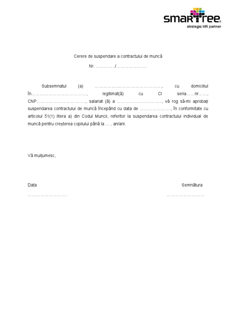 Cerere De Suspendare A Contractului De Munca Pentru Cresterea Copilului Pdf