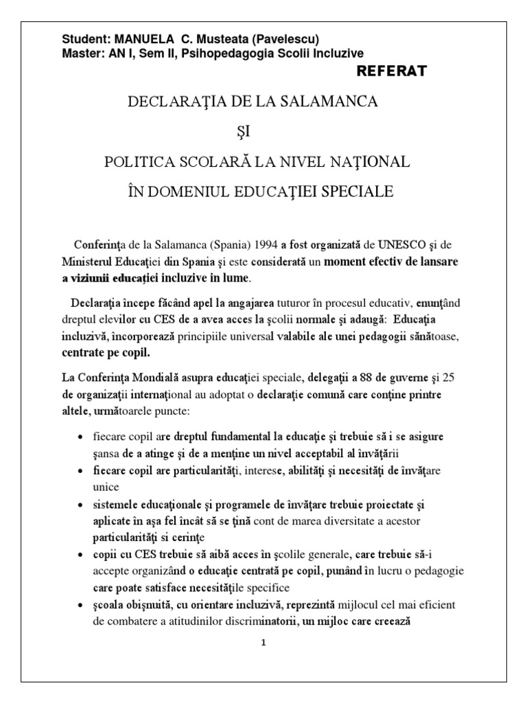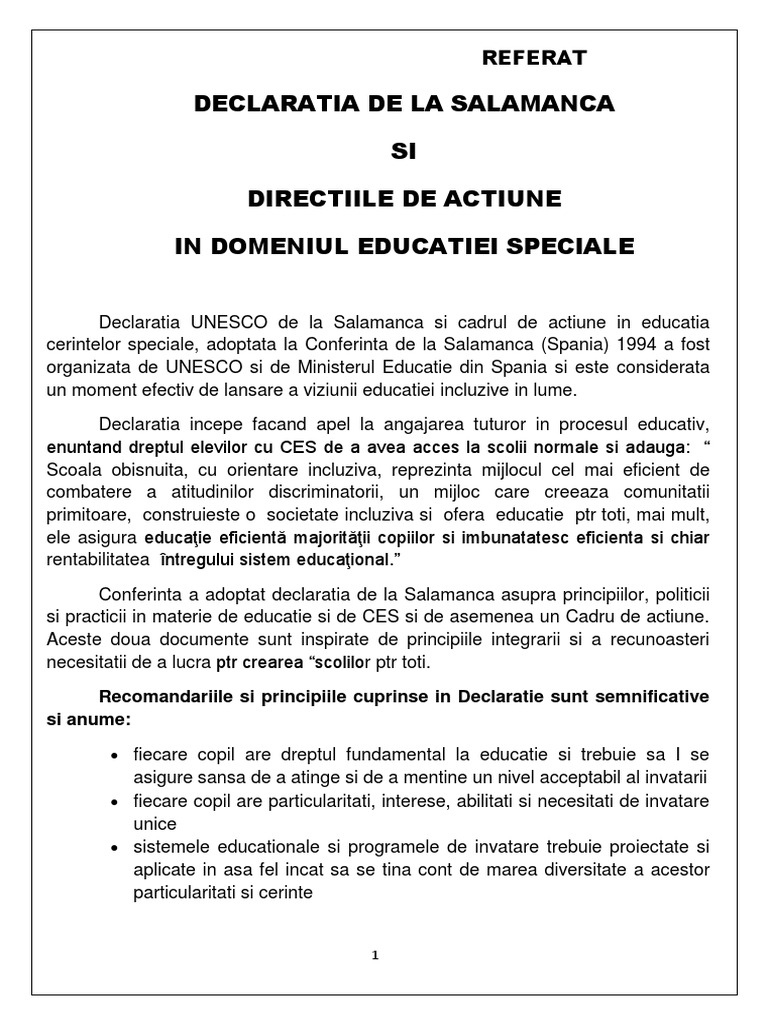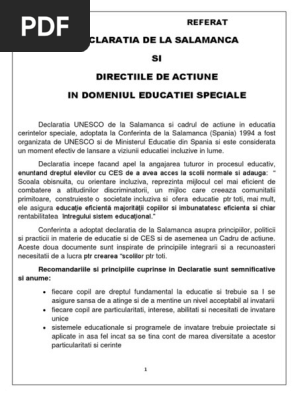 Referat Declaratia De La Salamanca Si Directiile De Actiune In Domeniul Educatiei Speciale 473475 Graduo