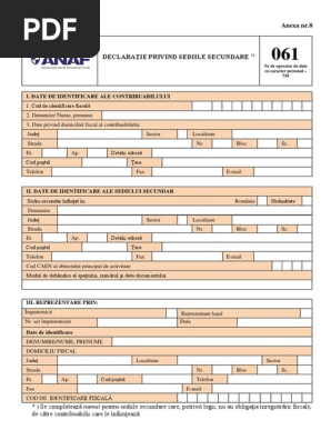 Anaf Formularul 061 Atribuirea Unui Cod Fiscal Pentru Punctul De Lucru