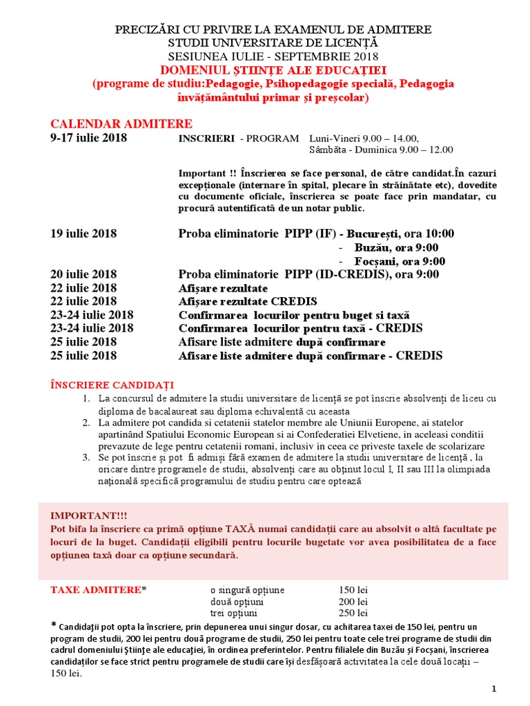 Precizari Admitere Studii Licenta Stiinte Ale Educatiei 2018 Pdf