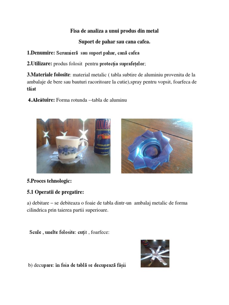 Fisa De Analiza A Unui Produs Metalic Cuiul Pentru Disciplina Tehnologie Clasa A Vii A