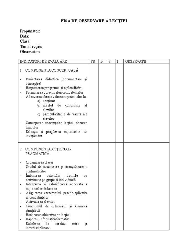 Fisa De Observare A Lecţiei Doc Document