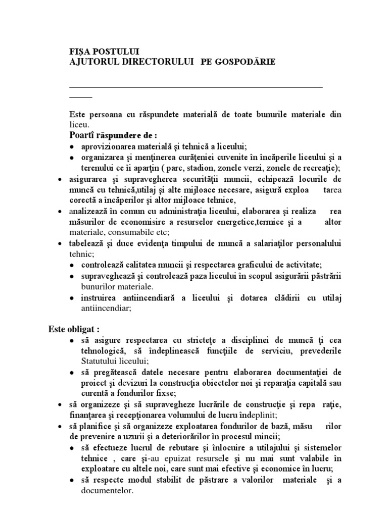 Http Www Isjcta Ro Wp Content Uploads 2016 09 3 Fisa Postului Director Adjunct Gimnaziu Pdf