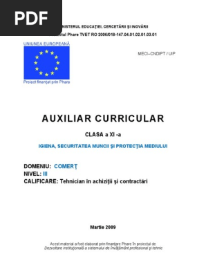 Auxiliar Curricular Igiena Si Securitatea Muncii Protectia Mediului Pip Clasa A Xi Vizireanu Valentina