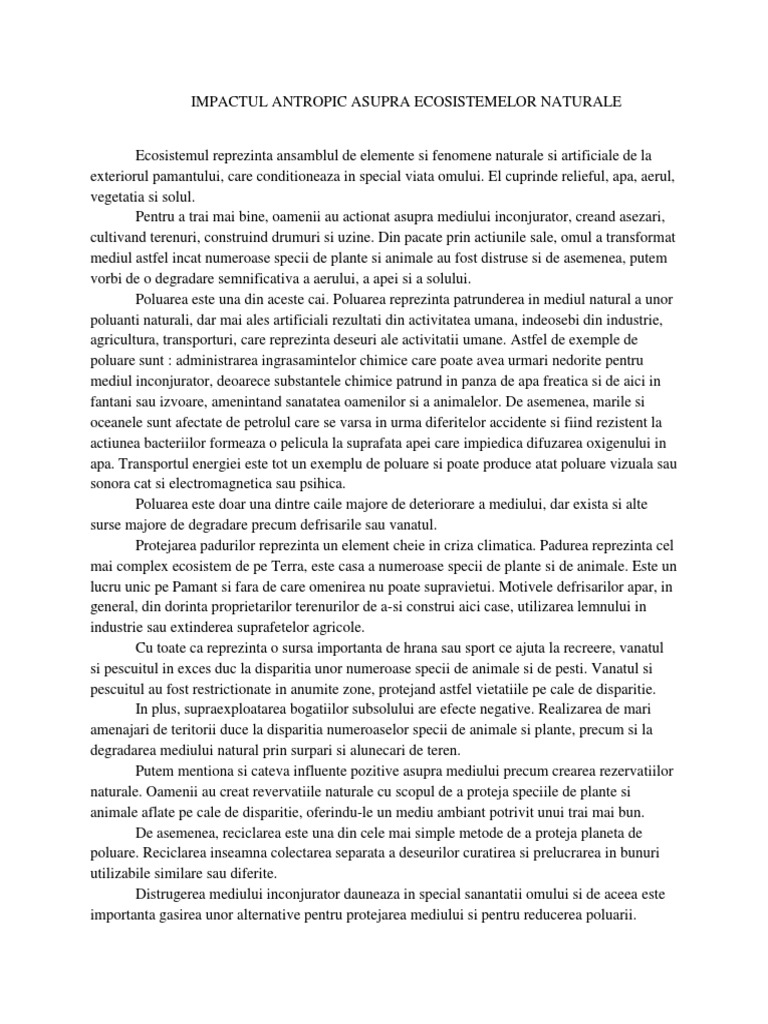 Impactul Antropic Asupra Ecosistemelor Naturale Pdf Free Download