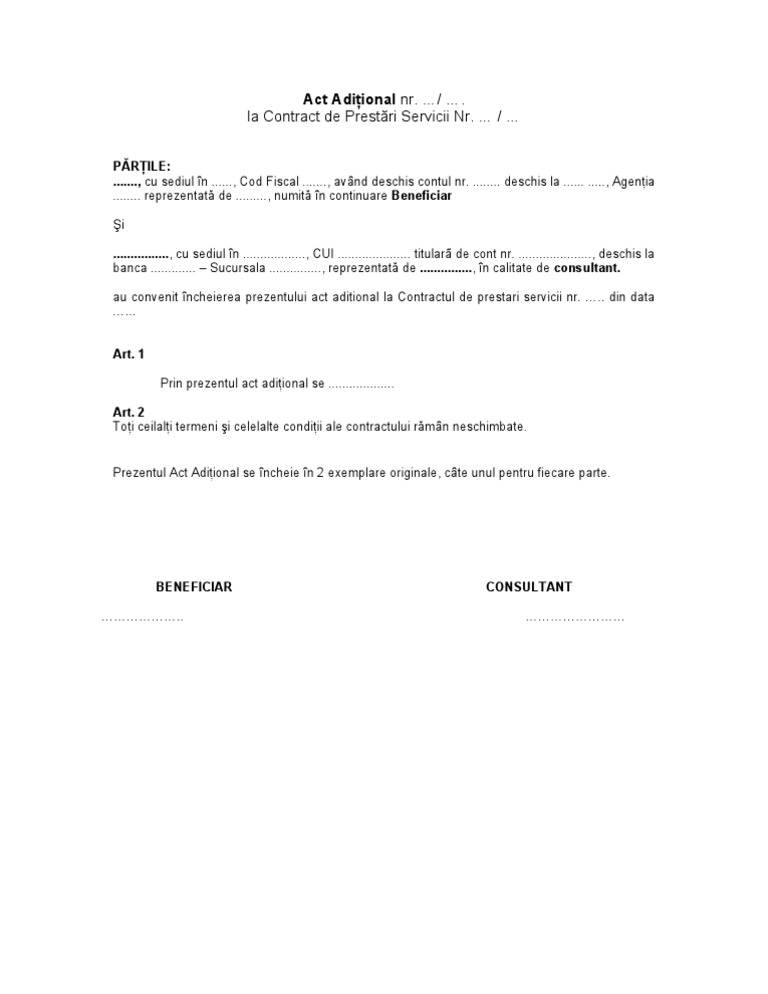 Model De Act Aditional De Reziliere Contract Individual De Munca