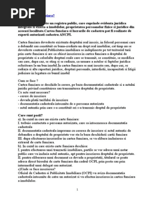7 1996 a cadastrului si a publicitatii imobiliare. Cartea funciara este formata din titlul numarul si numele localitatii in care se afla imobilul precum si descrierea imobilului inscrierea dreptului de proprietate dezmembramintele dreptului de proprietate si sarcini. Actul de proprietate trebuie să fie încheiat in forma prevazută de lege pentru valabilitatea sa de regula forma autentică actul de proprietate trebuie să contina date de identificare a imobilului respectiv numar cadastral sau topografic si numar de carte funciară art 29 din legea nr 7 1996 și să identifice titularul dreptului persoana fizică cu codul numeric personal. Ori de câte ori dobândirea dreptului de proprietate exclusivă sau pe cote părţi este condiţionată potrivit reglementărilor din prezenta secţiune de înscrierea în cartea funciară înscrierea se face în temeiul convenţiei.