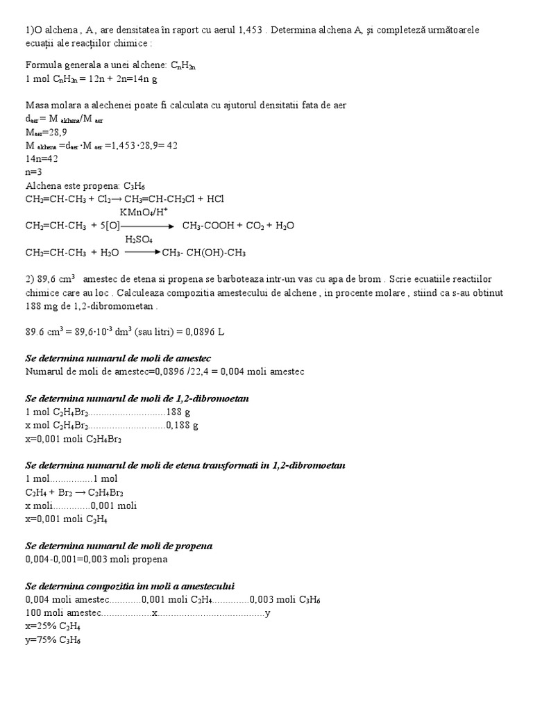 O Alchena A Are Densitatea In Raport Cu Aerul 2 1