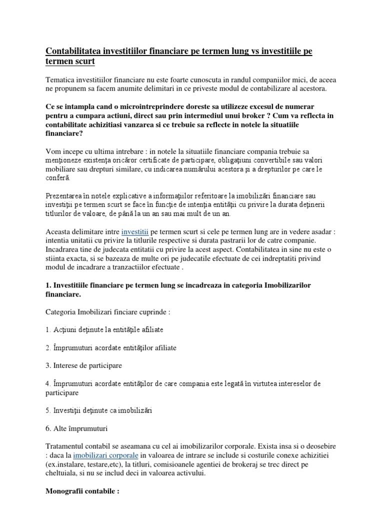 Contabilitatea Investitiilor Financiare Pe Termen Lung Vs Investitiile Pe Termen Scurt