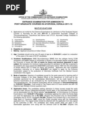 Kerala Pg Notification University And College Admission Doctor Of Medicine