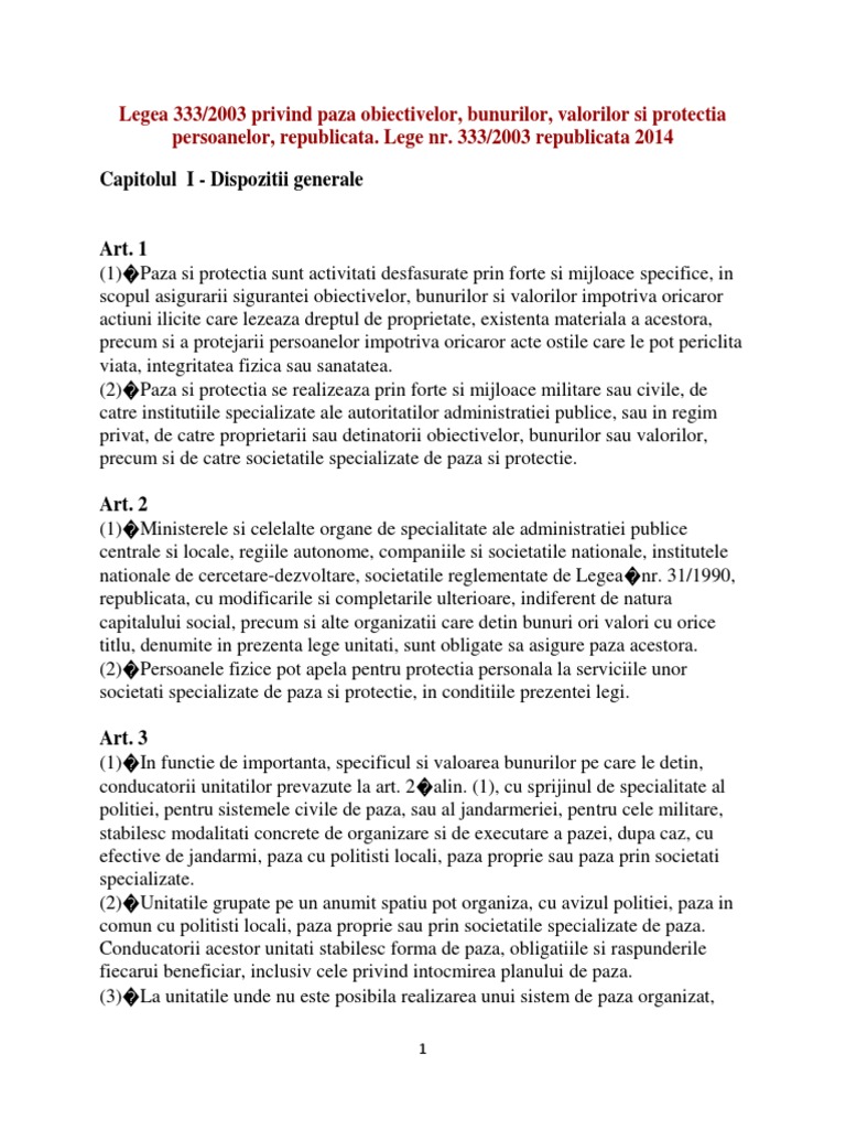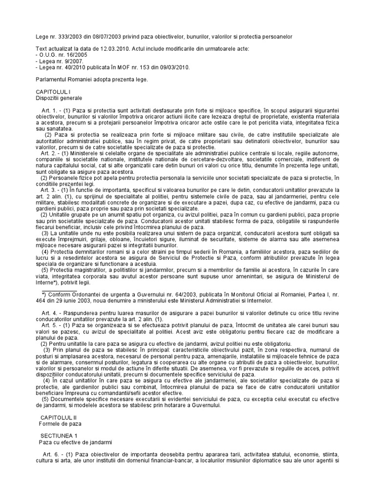 Legea 333 2003 Privind Paza Obiectivelor Bunurilor Valorilor Si Protectia Persoanelor