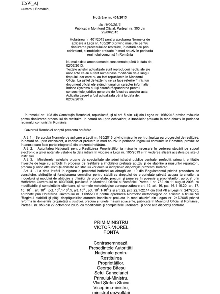 Hg 401 2013 Aprobare Norme De Aplicare A L 165 2013 Retrocedari