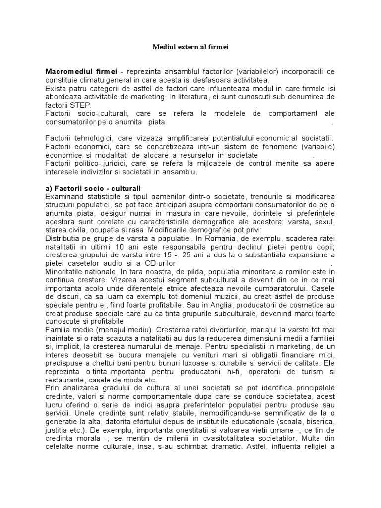 Referat Mediul Extern Al Firmei Management 81941 Regielive