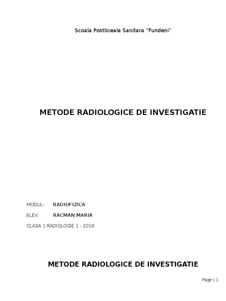 Metode Radiologice De Investigatie