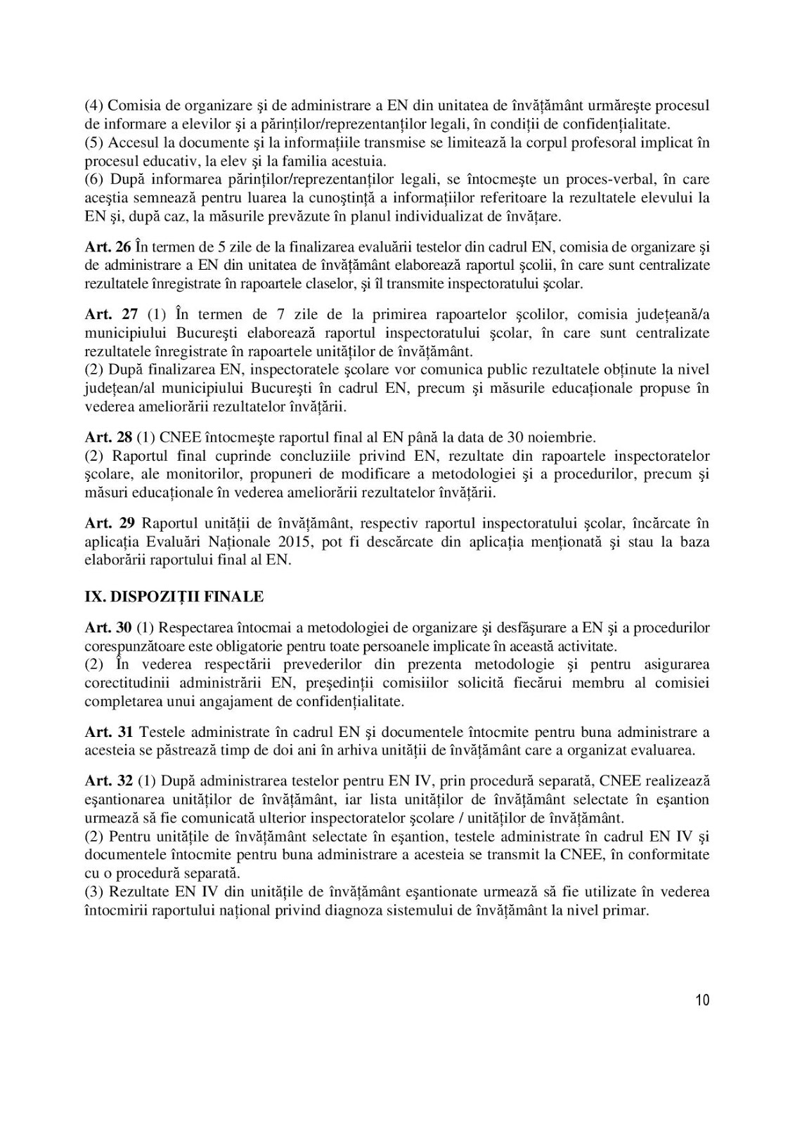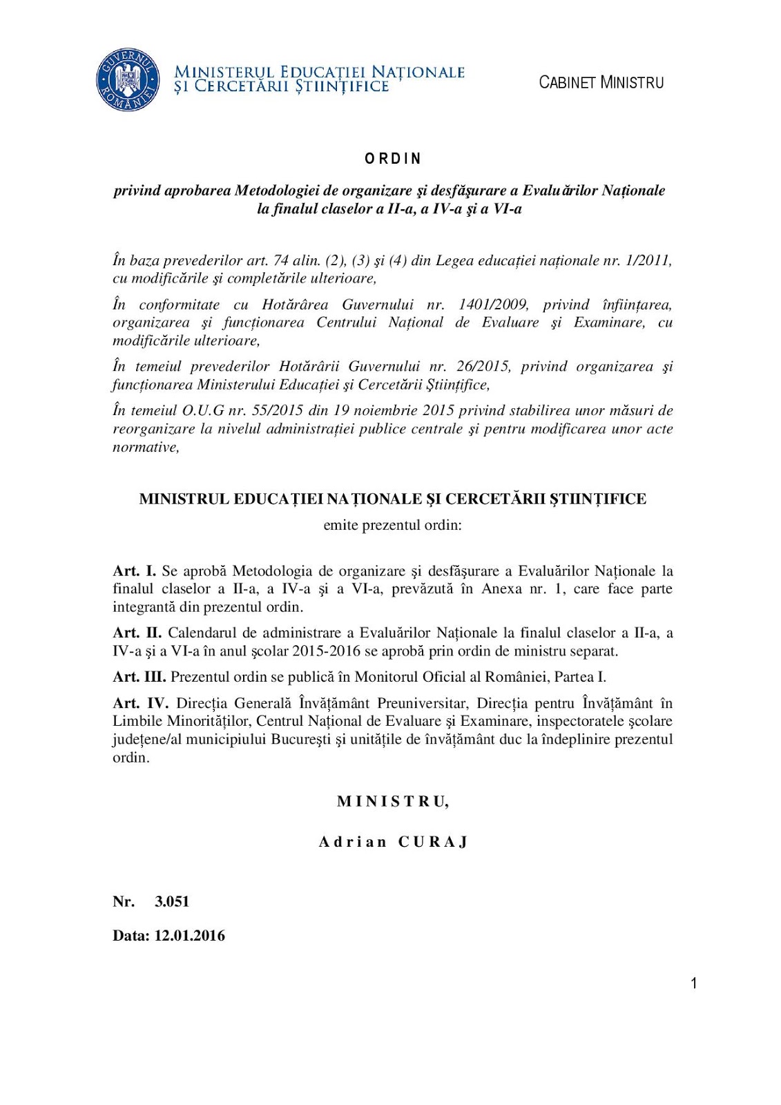 Scoala Gimnaziala Axente Sever Metodologii Evaluare Nationala 2015 2016