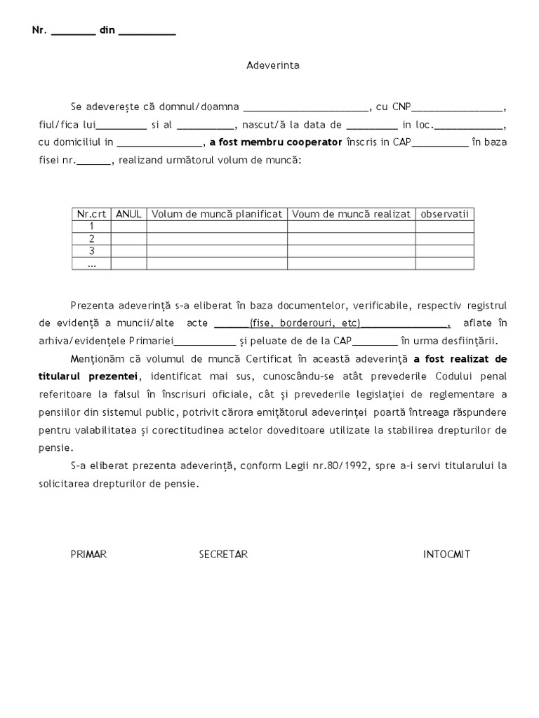 Model Adeverinta Vechime Pentru Pensie