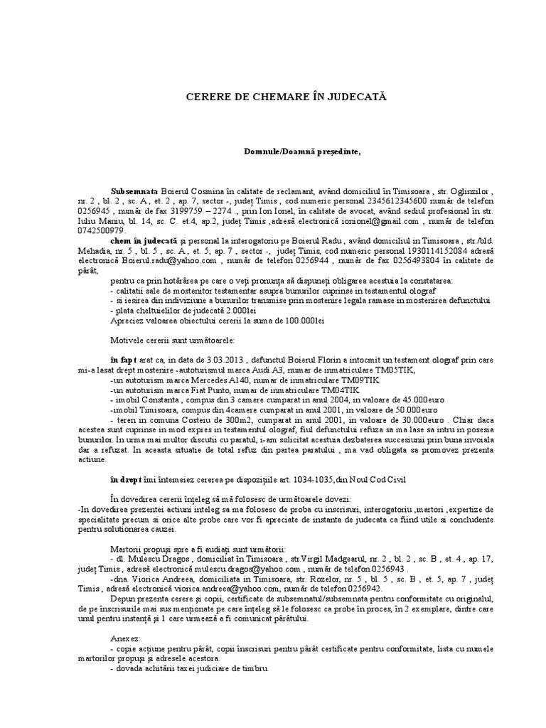 Model cerere dezbatere succesiune instanta. George enescu nr 27 29 parter incinta u g i r sector 1 bucurești. M ar ajuta foarte mult daca as gasi un model standard de cerere pentre deschiderea succesiunii in instanta am cautat pe internet dar nu am gasit nici un model potrivit răspunde citează dumitrscu utilizator 10 39 30 ianuarie 2018. Lista documentelor necesare și informații utile despre solicitarea și deschiderea procedurii succesorale. Procedura pentru eliberarea sesizarii privind deschiderea procedurii succesorale isi are inceputul la biroul de stare civila din localitatea de domiciliu a persoanei defuncte unde se depun urmatoarele acte.