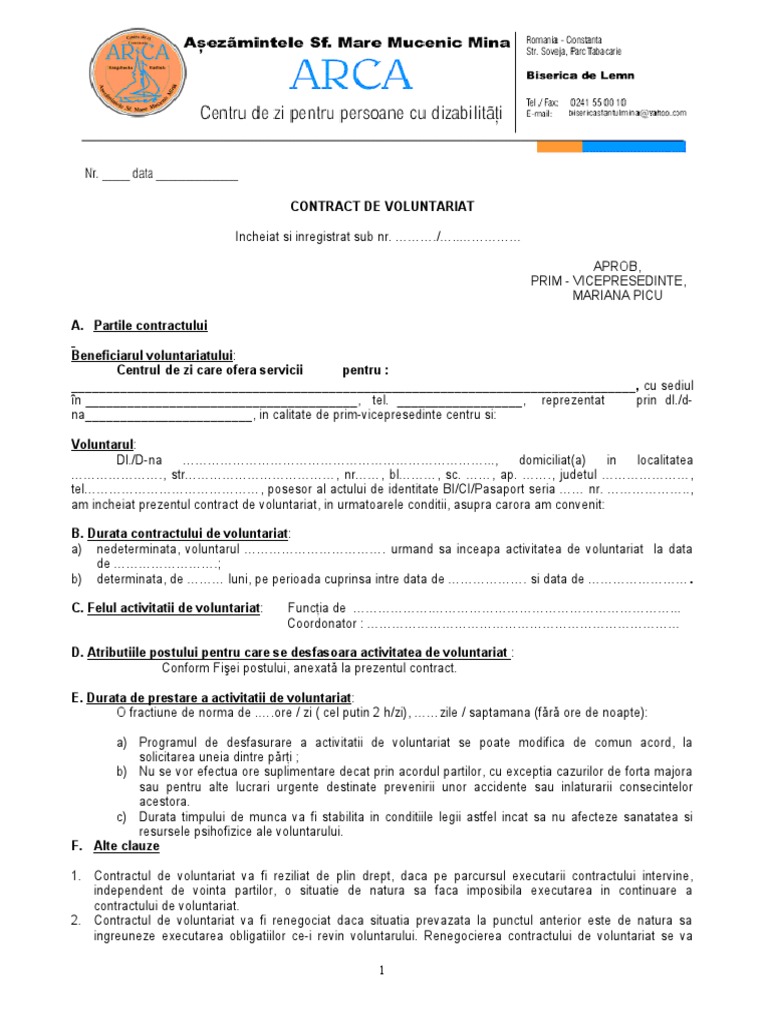 Doc Model De Contract De Voluntariat Adina Hoanta Academia Edu