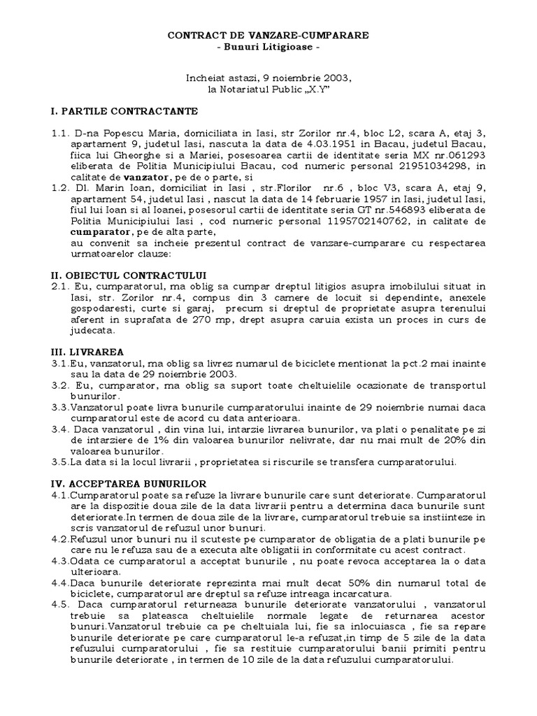 Contractul De Vanzare Cumparare Drepturi Litigioase Rtf