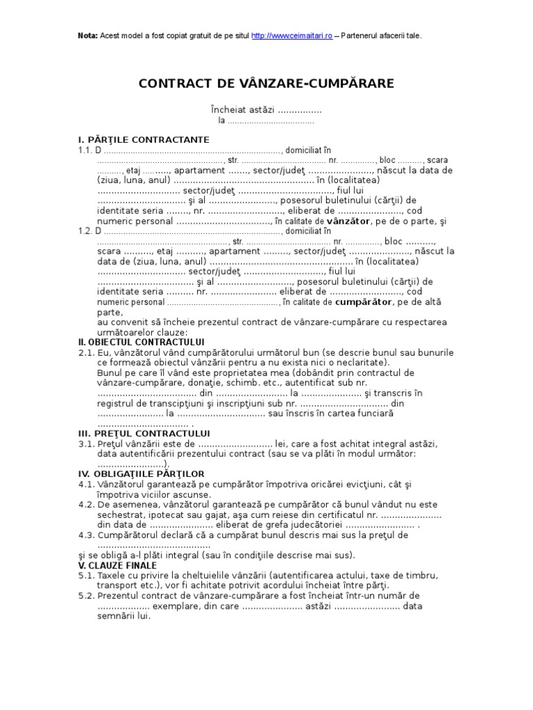 Model Contract Vanzare Bunuri Pf Pf