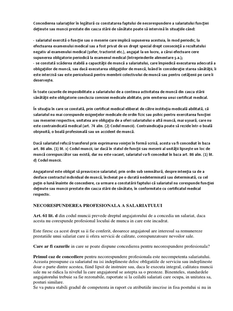 Referat Concedierea Din Motive Care Nu Tin De Persoana Salariatului 369560 Graduo