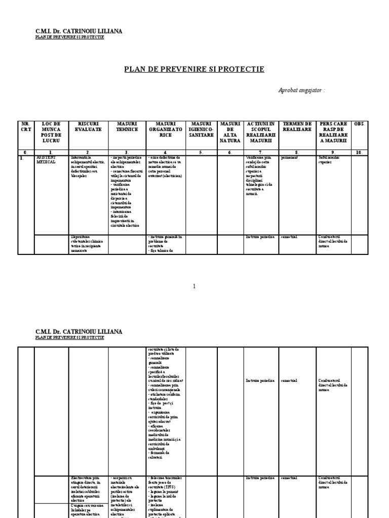 Plan De Prevenire Si Protectie Dr Catrinoiu
