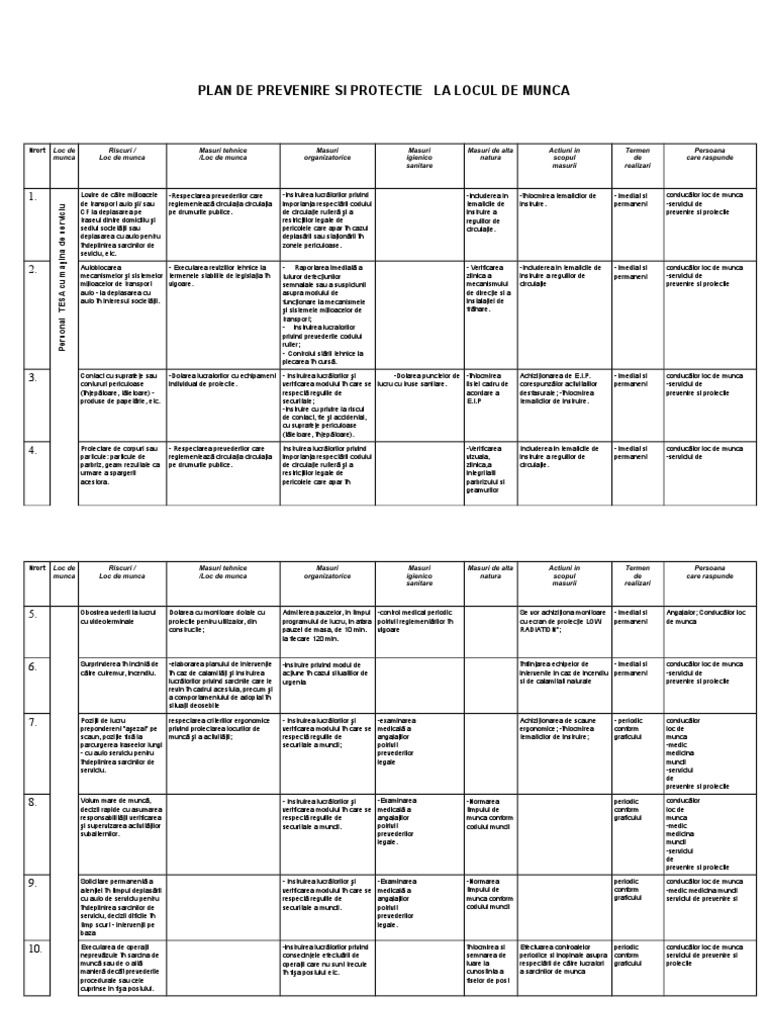 Model Plan De Prevenire Si Protectie General Pdf Document