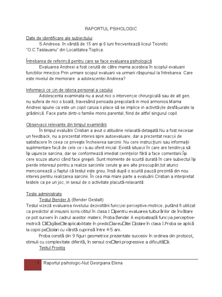 Proiect Raport Psihologic Psihologie 380487 Regielive