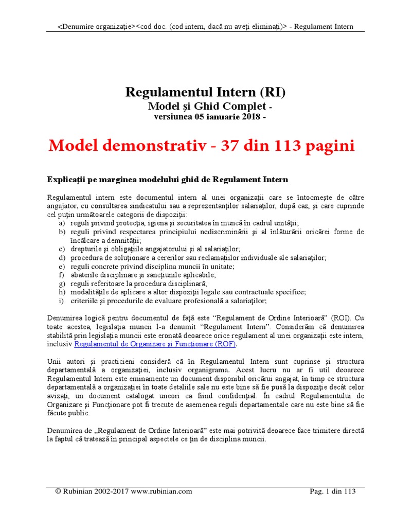 Regulament De Ordine Interioara Model Itm