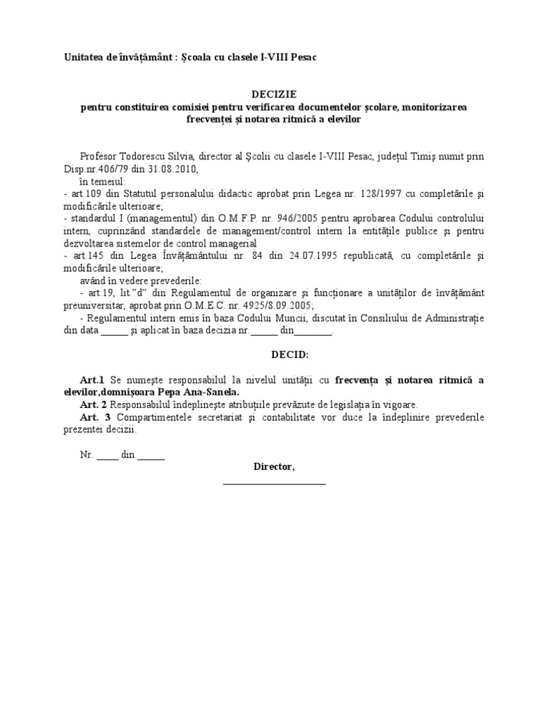 Model Decizie Angajare Suplinitori Pana La 60 Zile