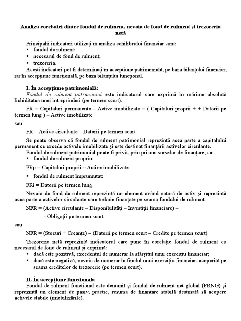 Referat Analiza Corelatiei Dintre Fondul De Rulment Necesarul De Fond De Rulment Si Trezoreria Neta Precum Si A Echilibrului Financiar Prin Metoda Ratelor Economie 178475
