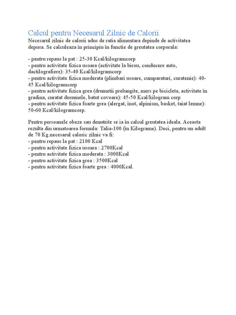Calculator Necesarul Zilnic De Calorii Unica Md
