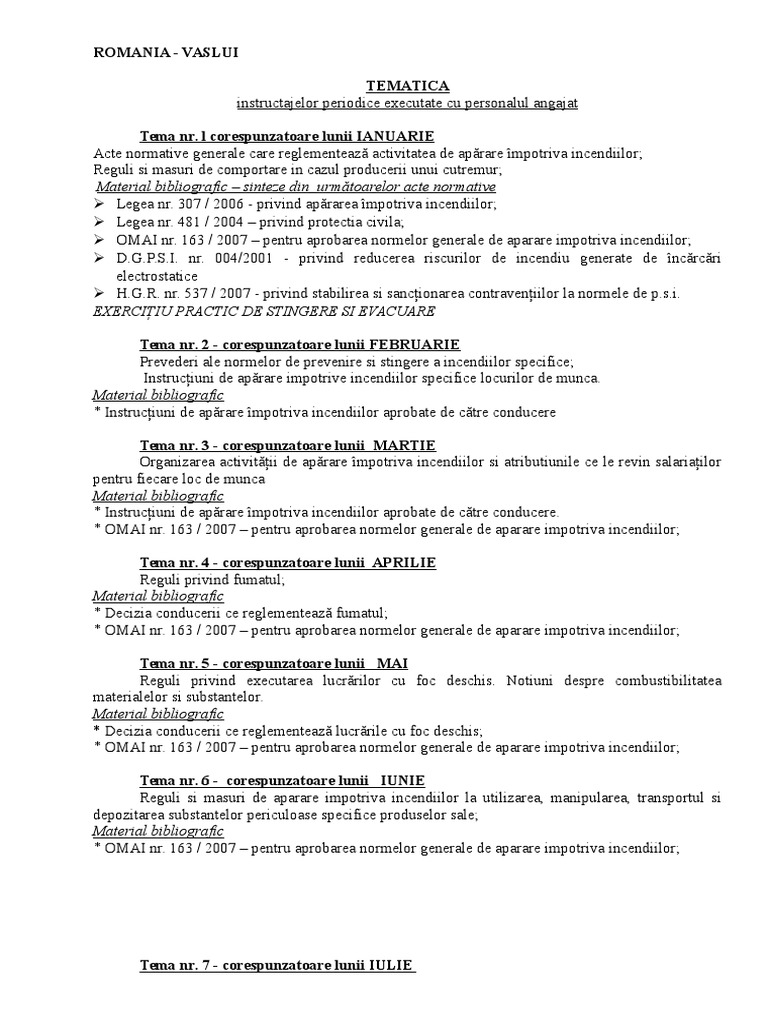 Tematica Instructaj Periodic Personal Angajat